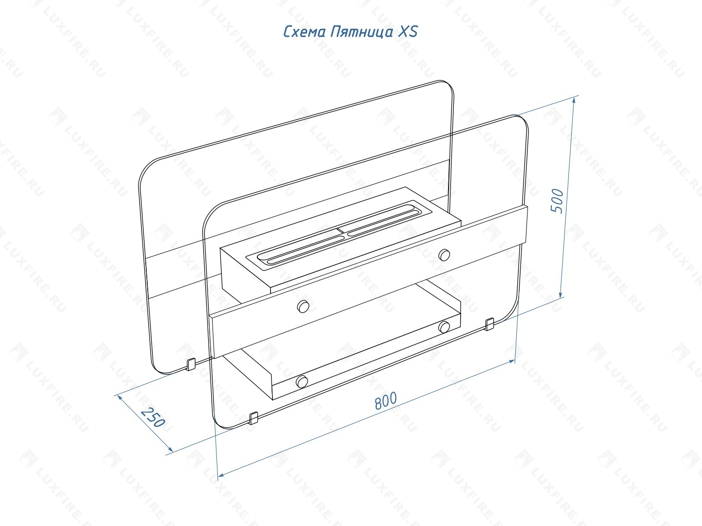 Размер биокамина (ВхШхГ; мм): 500х800х250.